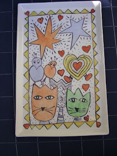 Den Entwurf zu meinem James Rizzi-Teller hatte ich euch ja hier: http://www.lusyls-kreativseite.blogspot.de/2015/08/james-rizzi.html schon mal gezeigt. Nun ist der Teller fertig. Ein paar Abwandlungen habe ich noch gemacht, aber so gefällt er mir nun richtig gut.